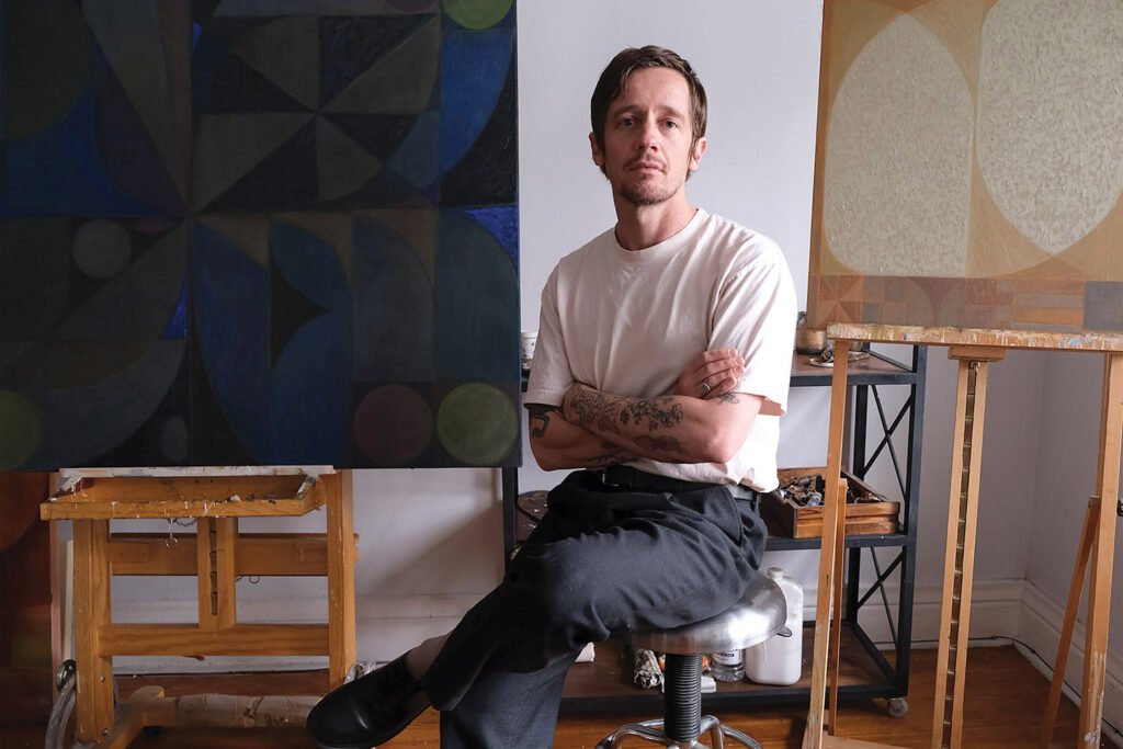 Glasson and friend Prescott McCarthy purchased the property in 2020: a “scrappy abandoned cabin” built in 1956 on 2.5 acres. “With our friends, we did 99 percent of the home’s design by hand,” Glasson says, using natural, found, and donated materials. The result is a livable sculpture, much of it mirroring his own artistic language, from furniture to cabinetry.