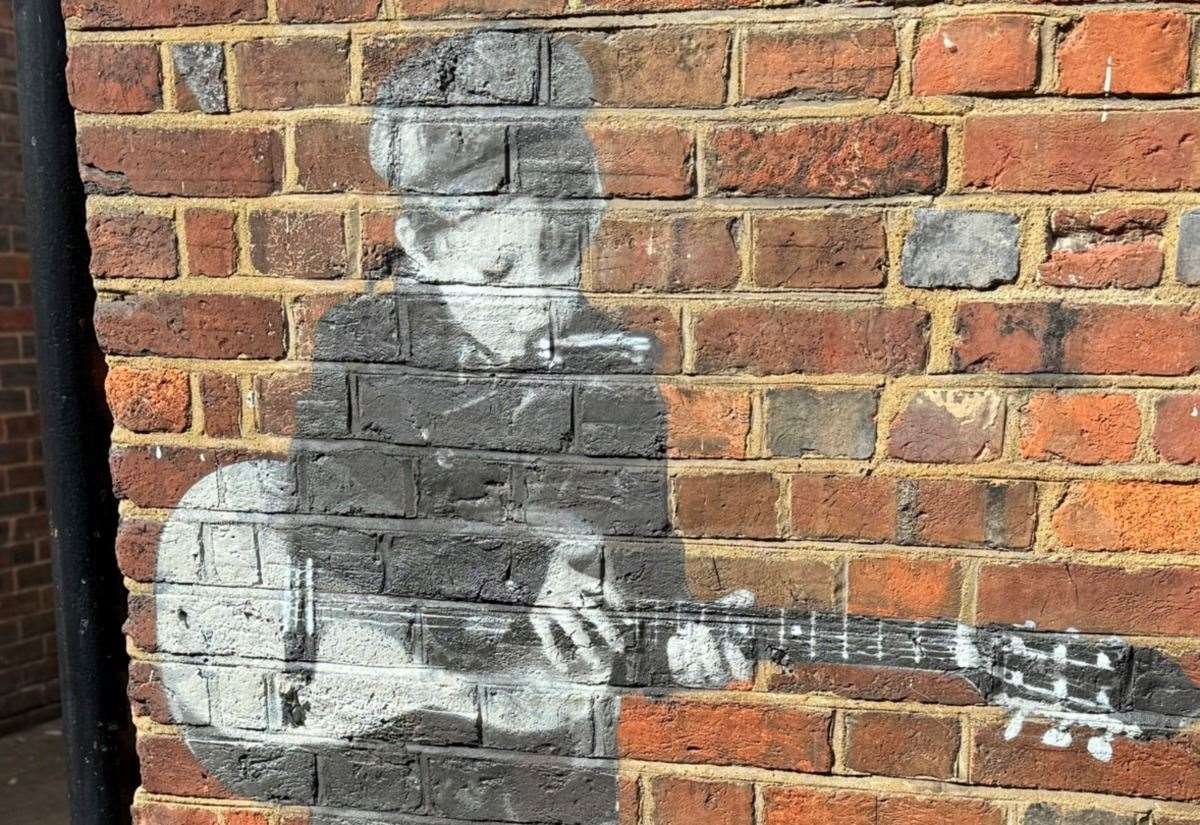 The piece depicting a child playing a harmonica and guitar has appeared in Sayers Lane, Tenterden.