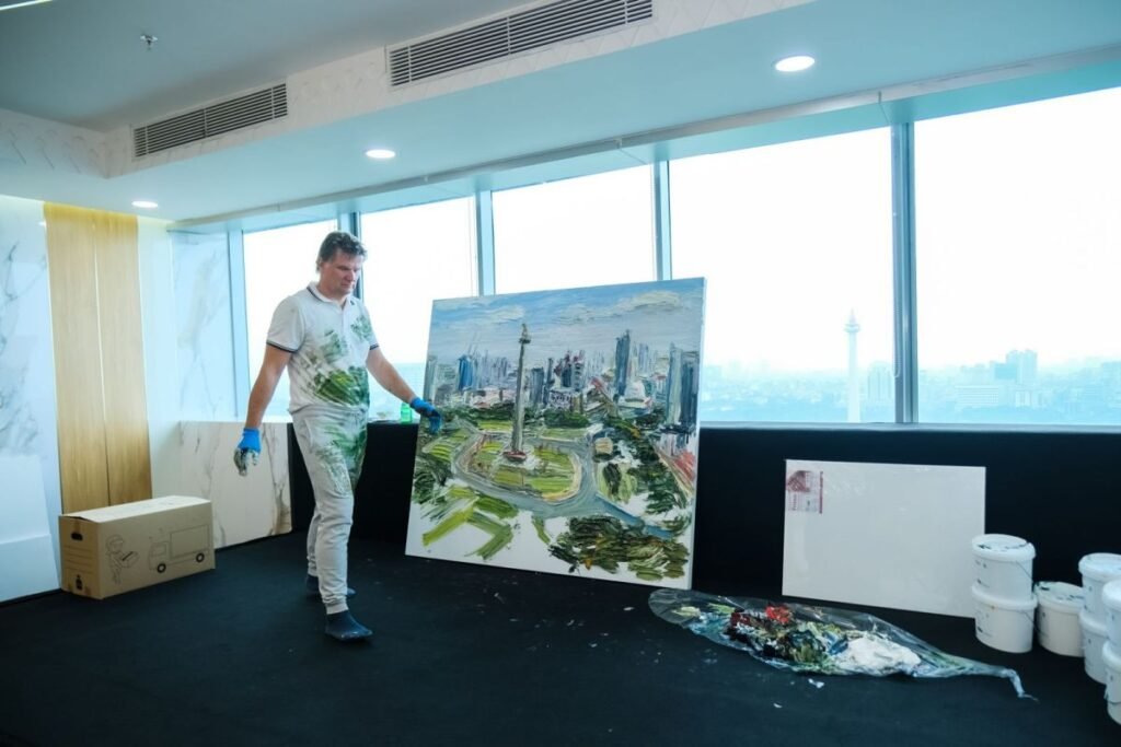 Christopher’s painting of the National Monument is part of an art project that will take him to various regions in Indonesia to capture its cultural richness through his works.