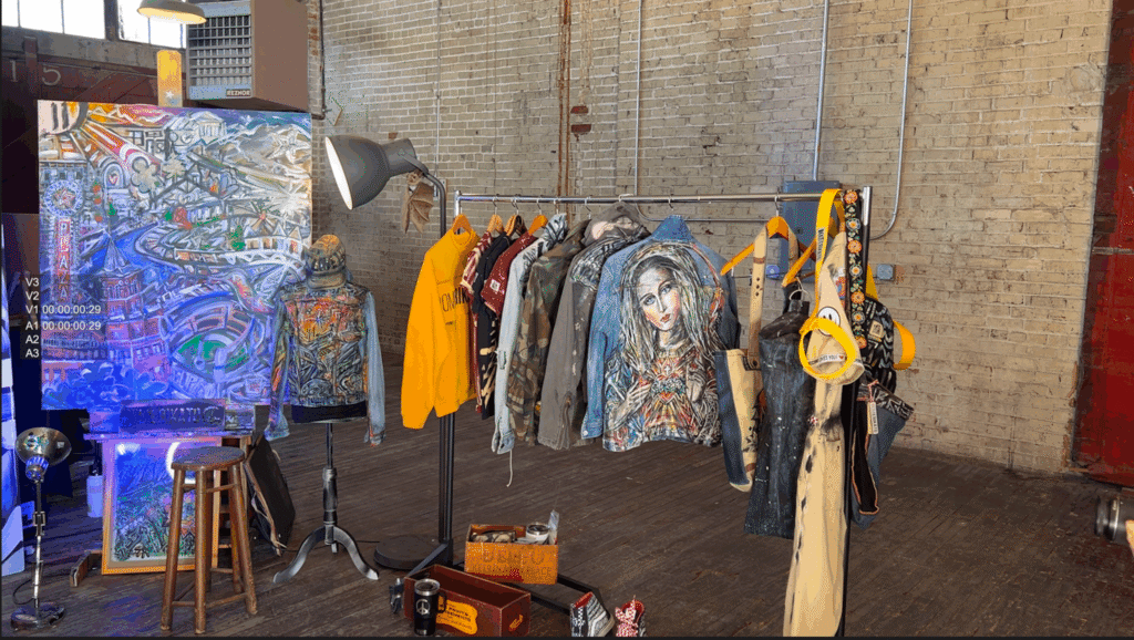 The atmosphere inside the Railyard was lively, with a saxophone player and guitarist performing as families, couples, and collectors moved from table to table. Many attendees stopped to talk with artists, asking about their process and the inspiration behind their work.